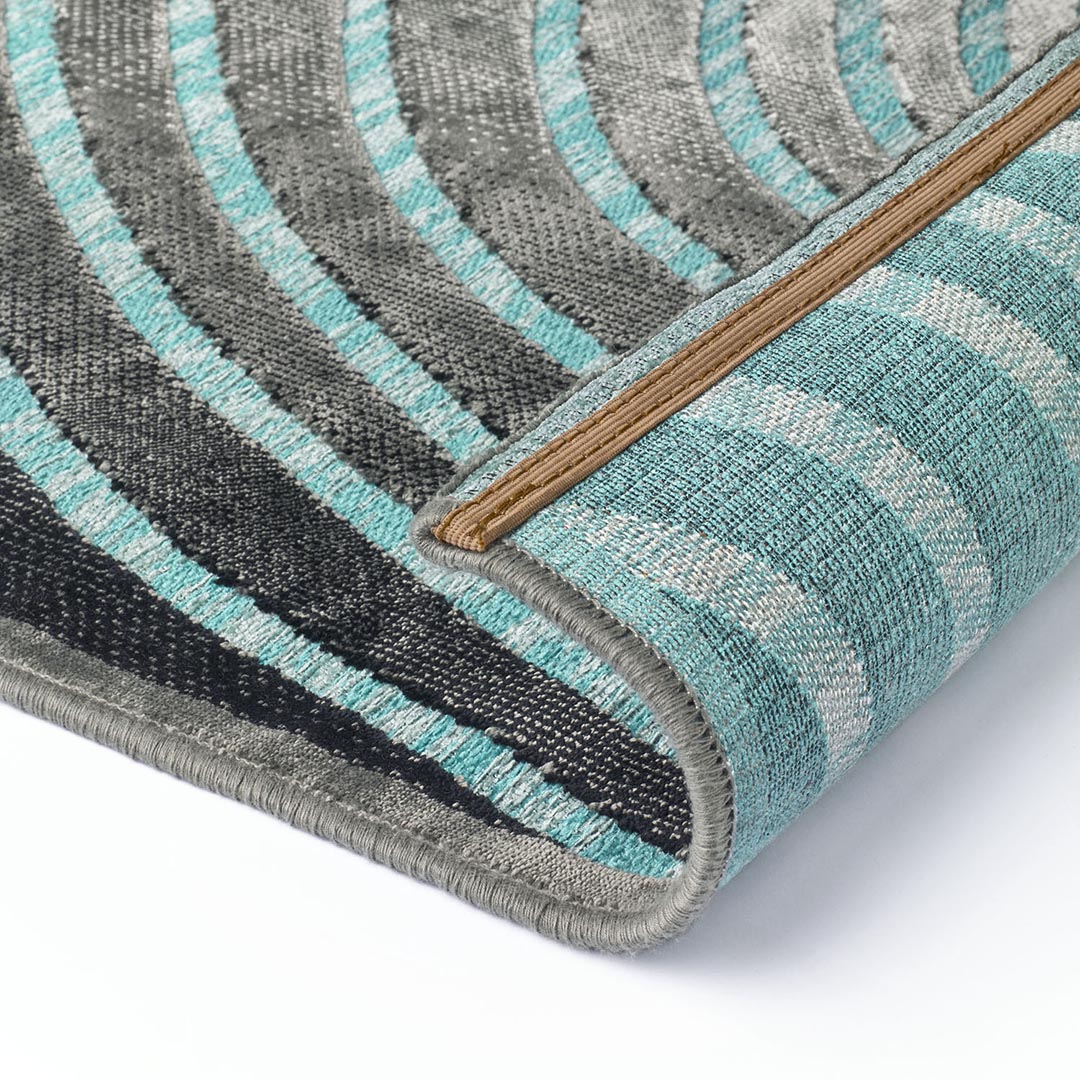 Voilà un de nos préférés de la gamme GABRIELLE : un tapis graphique et contemporain, un effet 3D et de belles tonalités de gris et de bleu.