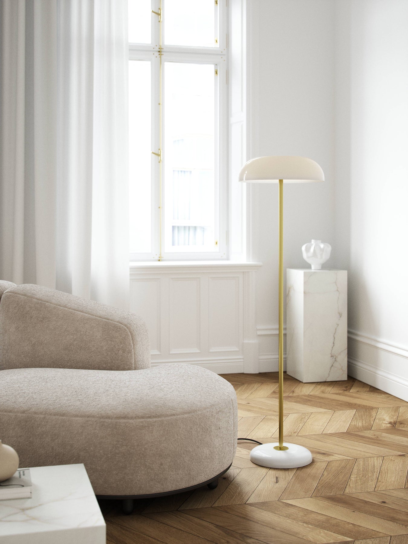 Imaginée par la designer Maria Bernsten à partir de matériaux nobles (marbre, laiton brossé), GLOSSY est le luminaire du moment... et de demain