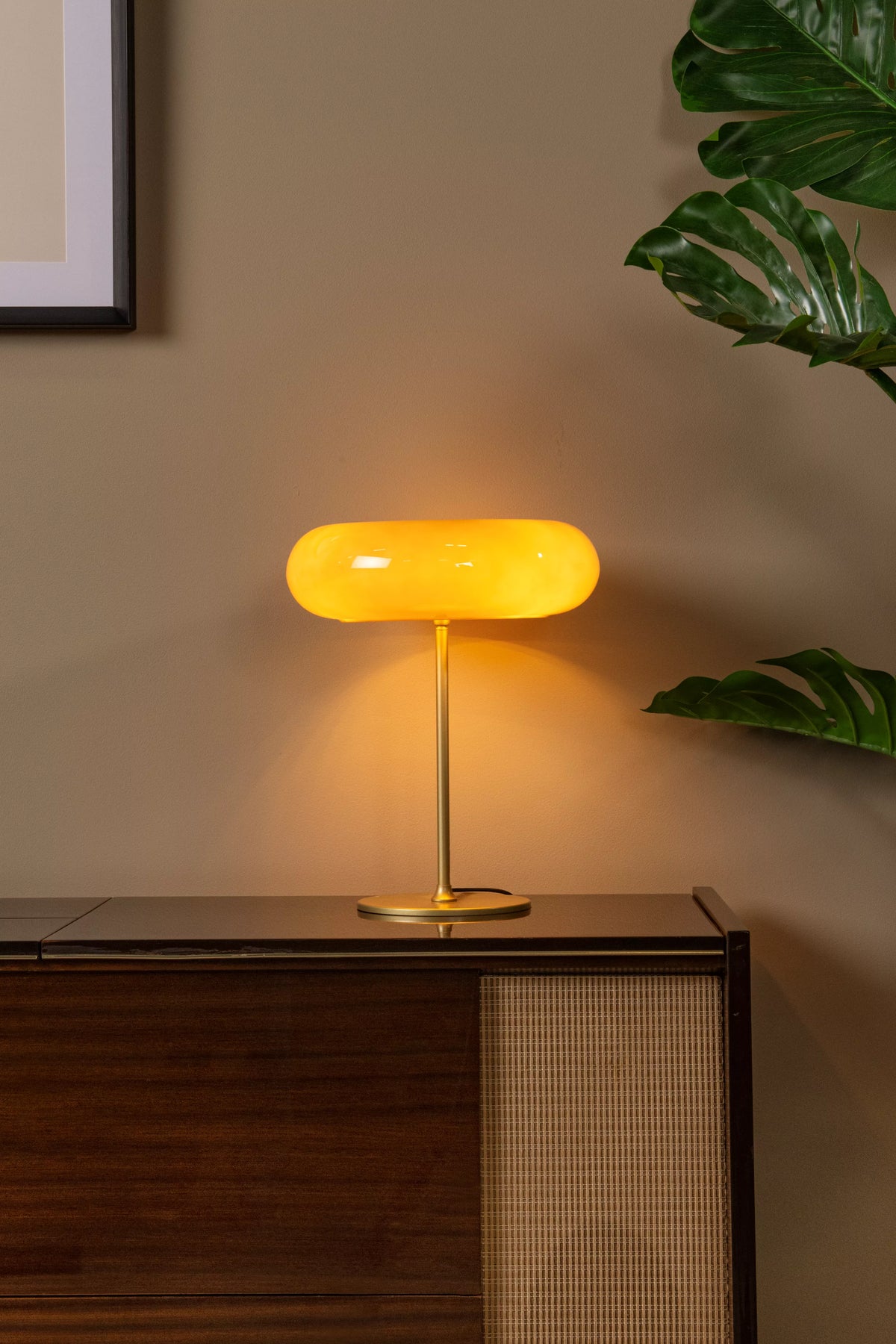 Une lampe à poser au design à la fois rétro et intemporel, une diffusion très douce de la lumière grâce à son abat-jour "donut" en verre : SENTINO possède tous les atouts d'un luminaire qui traverse le temps.